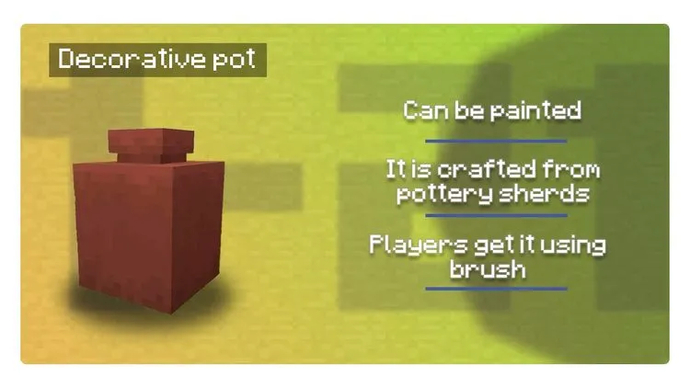 Einige Archäologie-Optionen haben sich verändert und sind besser geworden. In Minecraft PE Version 1.21 und 1.21.0 können Spieler zum Beispiel Töpfe zur Dekoration bemalen.